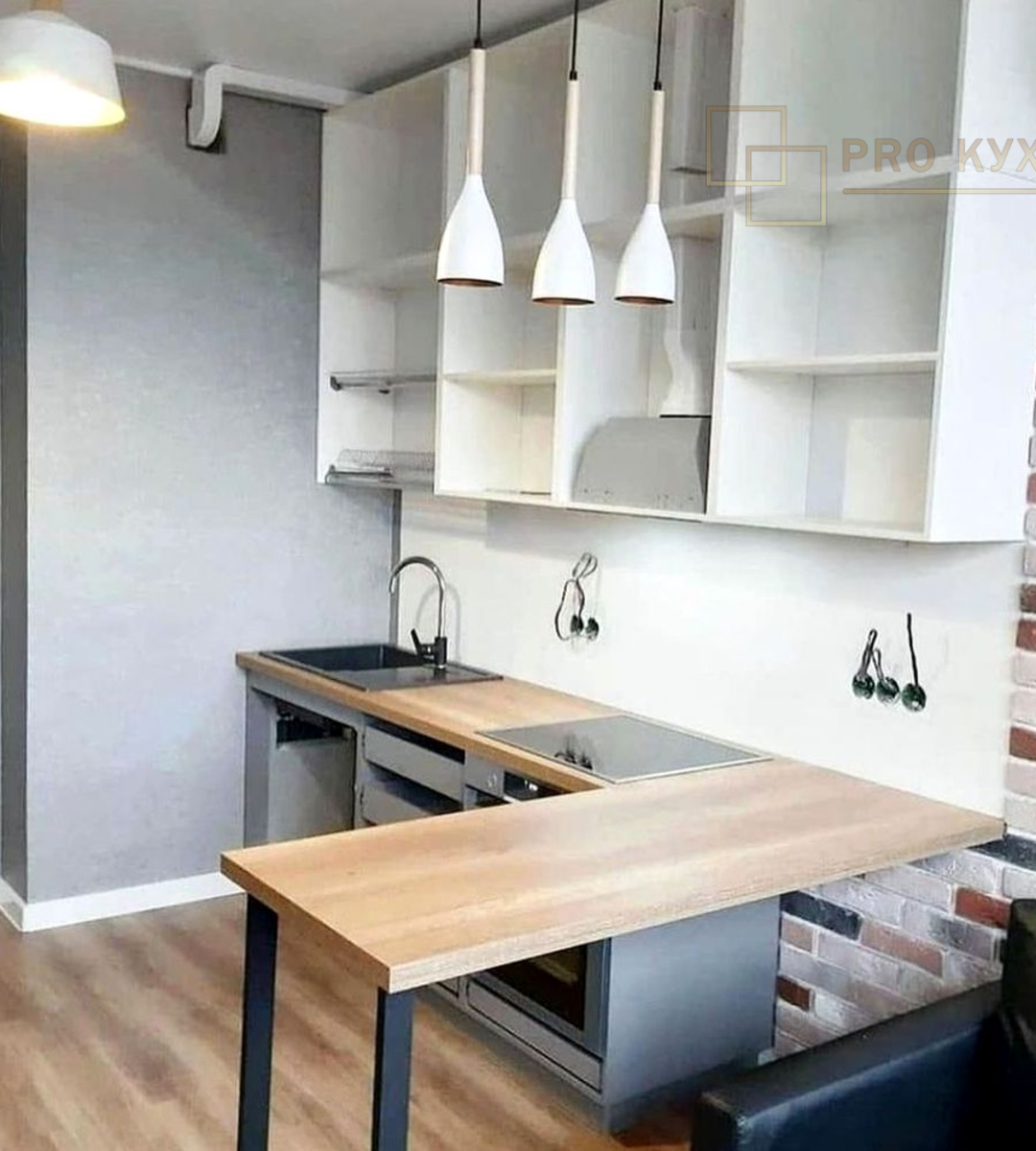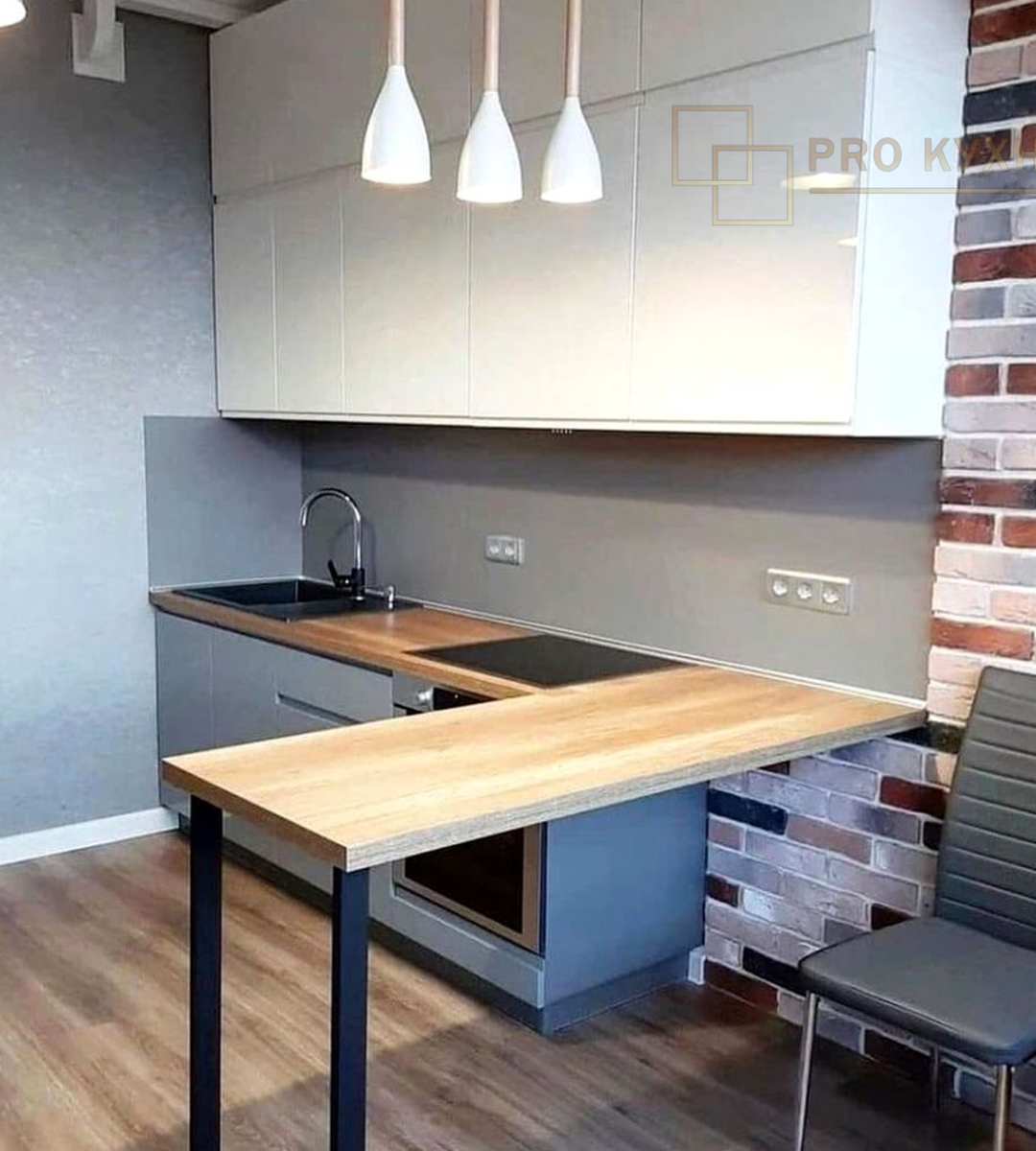 - Размер: угловая с барной стойкой 2,7 х 2,5 метра