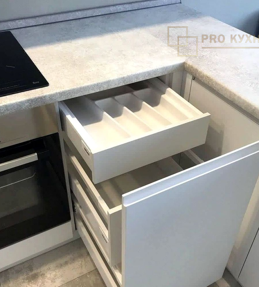 - Фасады: МДФ крашенное с интегрированной ручкой