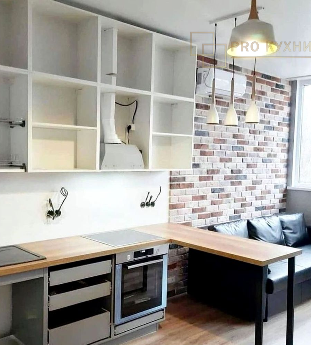 - Размер: угловая с барной стойкой 2,7 х 2,5 метра